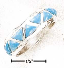 Sterling Silver Inverted Turquoise Triangles Wedding Ring - in Sterling Silver - - JewelryWeb Style: ISR21937SSH6 - FREE gift-ready jewelry box